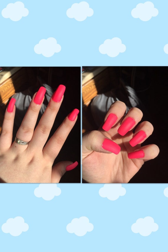 Hot Pink Neon Pink Acrylic Glue On Nails Gel Or Matte Custom Etsy